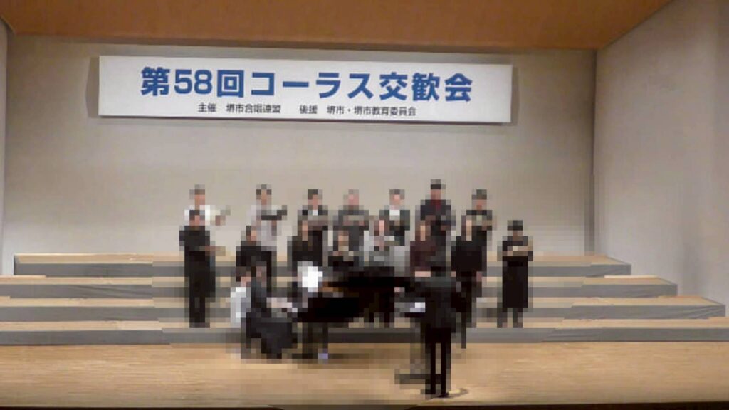そんな中、この日私たちは堺市立栂文化会館ホールで開催されたコーラス交歓会に出席し、混声合唱曲集「地平線のかなたへ」より、「春に」「サッカーによせて」の2曲を演奏いたしました。